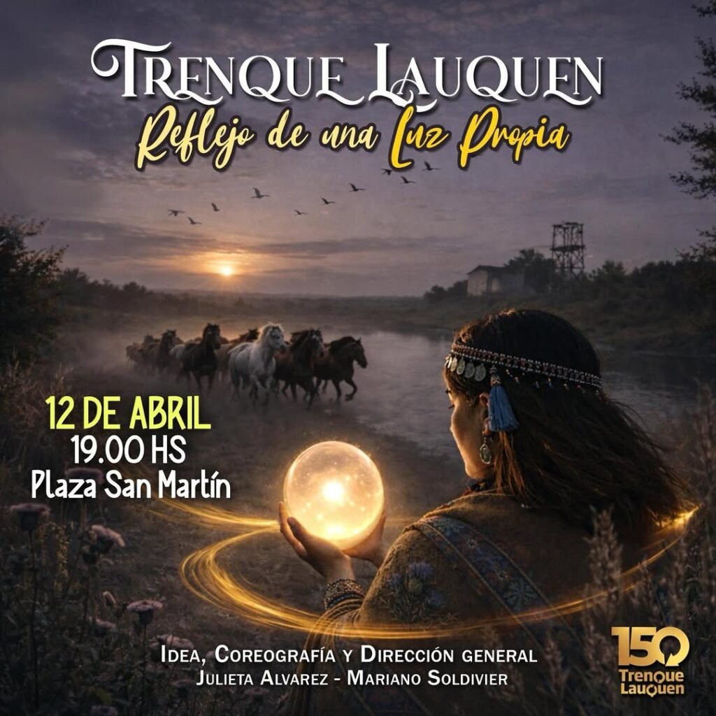 Distintos ballets y cuerpos de danza presentarán el espectáculo “Trenque Lauquen – Reflejo de una luz propia” este domingo 12 de abril desde las 19 hs. en la Plaza San Martín, en el marco de los festejos centrales por el 150° aniversario de Trenque Lauquen.