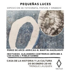 Se inaugura este viernes 21 de noviembre a las 20 hs. con participación de 9 artistas locales: : Nani Grossi, Iris Rebecchi, Javier Núñez, Marianela Costa, Juan Orellana, María Perkins, Naki, Pato Domínguez y Pali Luna.