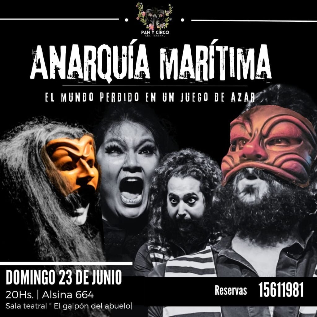 Este domingo 23 de junio a las 20 hs llega desde Bahía Blanca a El Galpón del Abuelo (Alsina 664) la obra teatral “Anarquía marítima. El mundo perdido en un juego de azar”, presentada por la compañía Pan y Circo Teatro.