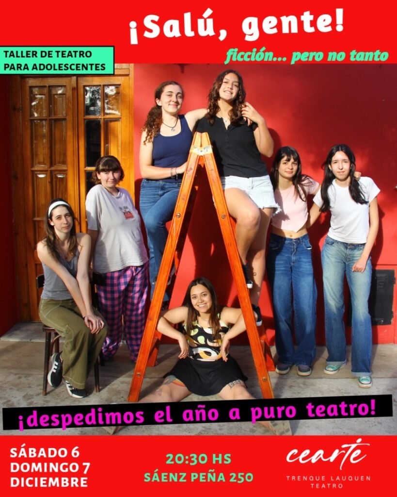 Este sábado 6 y domingo 7 de diciembre a las 20.30 hs en la sala de Sáenz Peña 250 el grupo de actrices más jóvenes de Cearte cerrará su año de trabajo con un espectáculo para todo público denominado “¡Salú, gente!”… Ficción, pero no tanto.