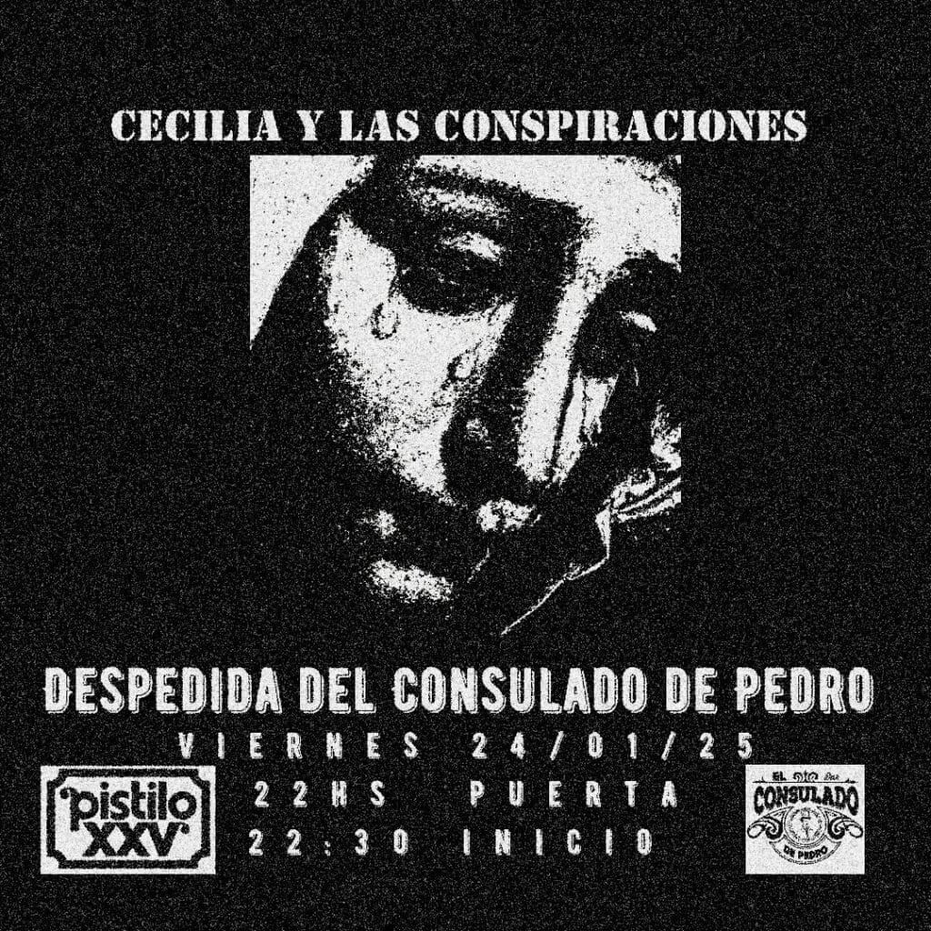 El viernes 24 de enero será la despedida de El Consulado de Pedro (Mariano Moreno 41). Para la ocasión especial se presentará a las 22.30 hs la banda local de post punk Cecilia y las Conspiraciones.