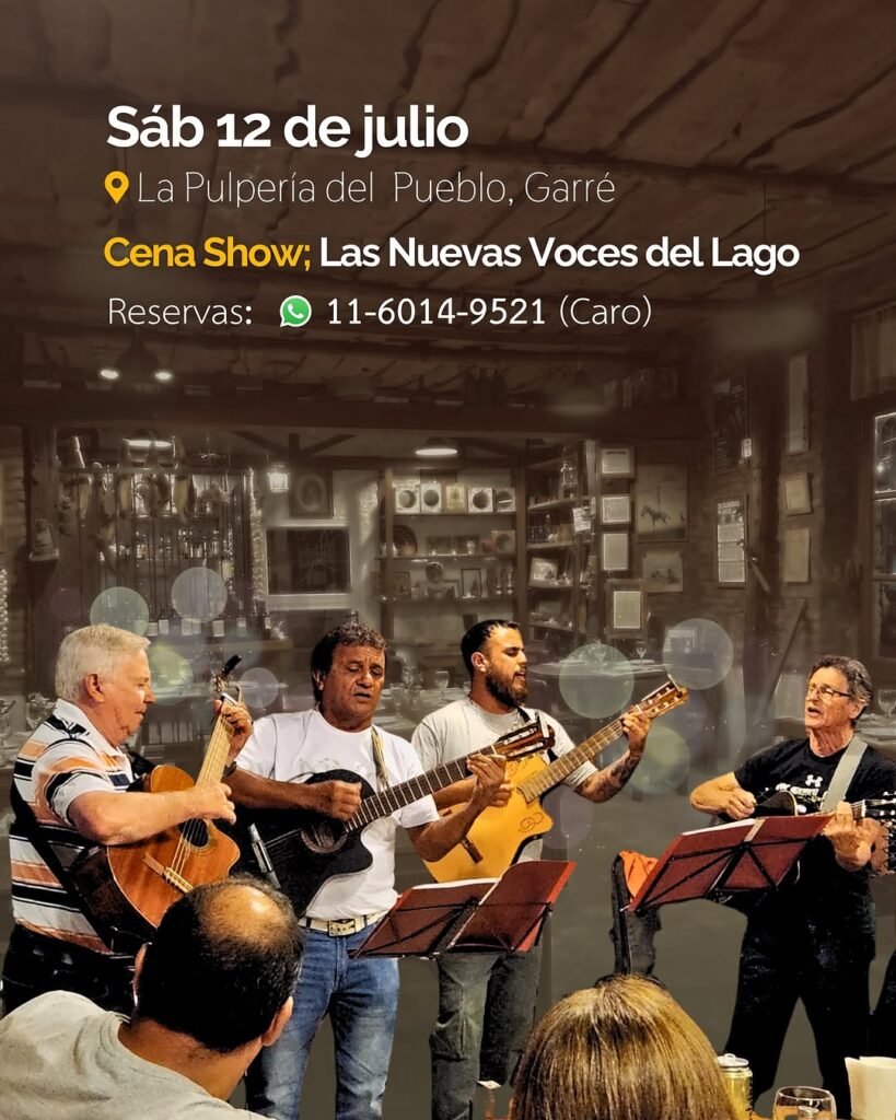 Este sábado 12 de julio desde las 21 hs. hay Cena Show en La Pulpería del Pueblo, de Garré, con la presentación especial de Las Nuevas Voces del Lago.