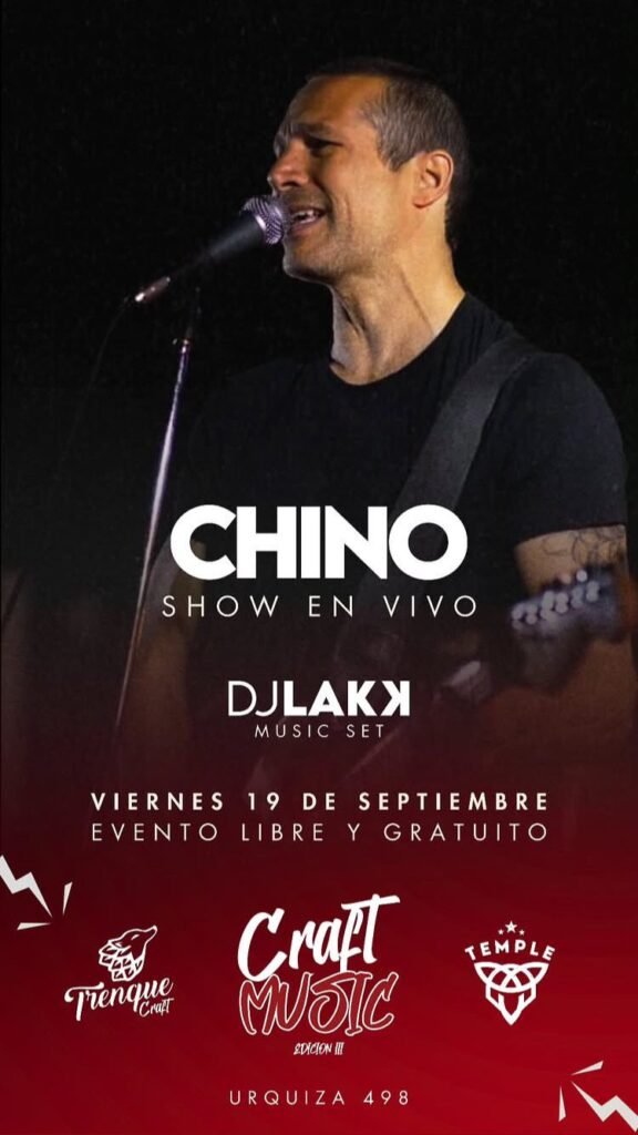 Este viernes desde las 22.30 hs en Trenque Craft (Urquiza 498) se presenta Chino, con su repertorio de rock, en el marco de una edición de Craft Music. La entrada es libre y gratuita.