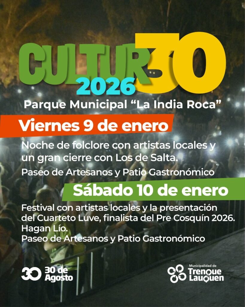 Más allá de la grilla artística, esta edición tendrá un valor simbólico particular: será el puntapié inicial para comenzar a trabajar en la celebración de los 25 años de Cultur30, un festival que se ha consolidado como un espacio de encuentro, identidad y expresión cultural, convocando a público de toda la región y reafirmando su lugar dentro del calendario de eventos del distrito.