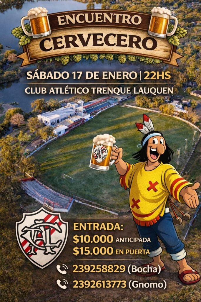 Este sábado 17 de enero a las 22 hs El Club Atético Trenque Lauquen realizará en su predio un Encuentro Cervecero, con participación empresas productoras de cerveza artesanal.