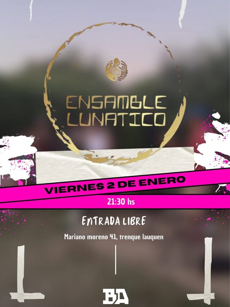 Este viernes 2 de enero a las 21.30 hs. en Barzobia (Mariano Moreno 41) se presenta la banda local Ensamble Lunático, con entrada libre.
