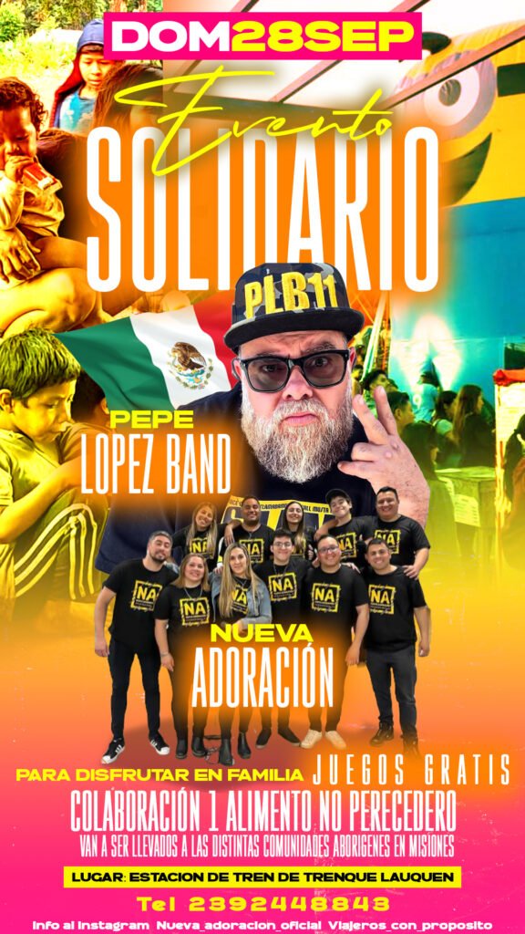 Este domingo 28 de septiembre desde las 15 hs se llevará a cabo en la Estación del Ferrocarril un evento solidario, que contará con la participación de Pepe López Band y Nueva Adoración. Habrá además juegos gratis.