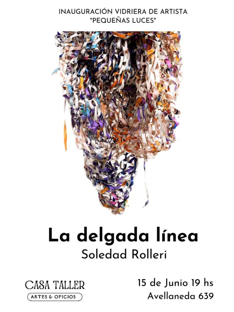 Casa Taller inaugura este domingo 15 de junio a las 19 hs. en Avellaneda 639 la Novena Vidriera del Ciclo “Pequeñas Luces”. Se trata de “La Delgada Línea”, de la artista de Olavarría Soledad Rolleri, que estará presente en la inauguración de esta vidriera.