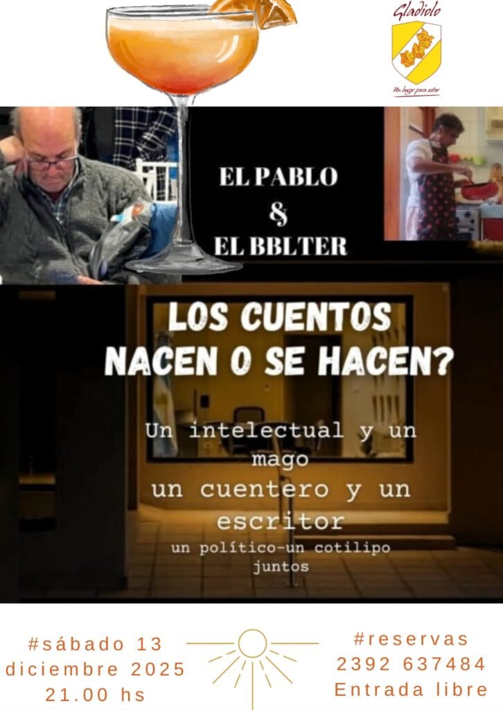 Este sábado 13 de diciembre a las 21 hs. en Café Gladiolo (Cuello 80) se presenta propuesta “Los cuentos nacen o se hacen”, a cargo de El pablo y el Bbalter.