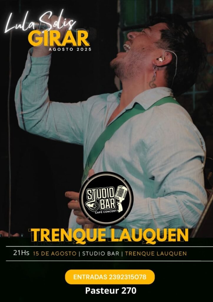 Este viernes 15 de agosto a las 21 hs en Studio Bar (Pasteur 250) vuelve a presentarse el reconocido artista musical Lula Solís. Presentará un amplio repertorio folklórico de temas propios y de otros autores.