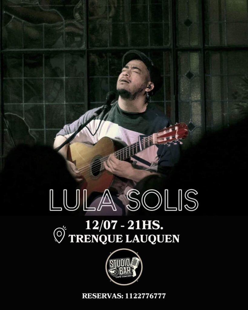 El viernes 12 de julio a las 21 hs. se presenta en Studio Bar (Pasteur 270) el músico Lula Solís. Las entradas se pueden reservar al teléfono (011) 2277-6777.