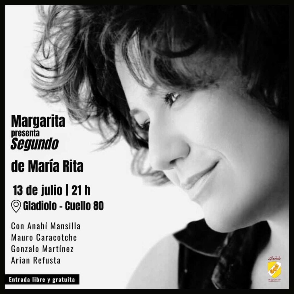 Este sábado 13 de julio desde las 21 hs. se presenta en Café Gladiolo (Cuello 80) “Margarita”, una formación compuesta por por Anahi Mansilla, Arian Refusta, Mauro Caracotche y Gonzalo Martinez que debutará con la reversión del álbum «Segundo» de Maria Rita. El mismo cuenta con versiones únicas y arreglos especialmente hechos para que la intérprete haga suyas las canciones. El disco cuenta con un repertorio exquisito de música popular brasileña fusionado con géneros como el jazz y el latin, sin dejar de lado los ritmos propios del estilo.