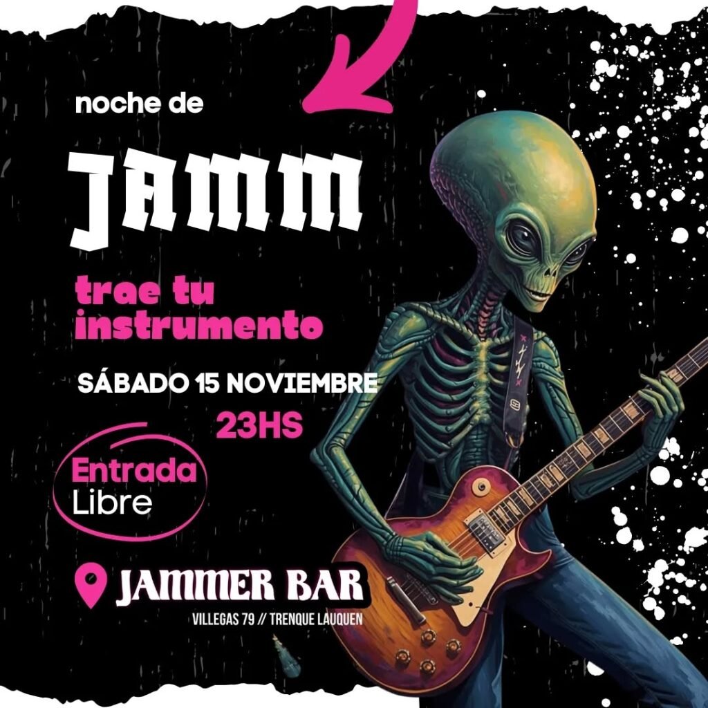 Este sábado 15 de noviembre a las 23 hs. en Jammer Bar se realizará una Noche de Jamm. Podés llevar tu instrumento y sumarte. La entrada es libre.