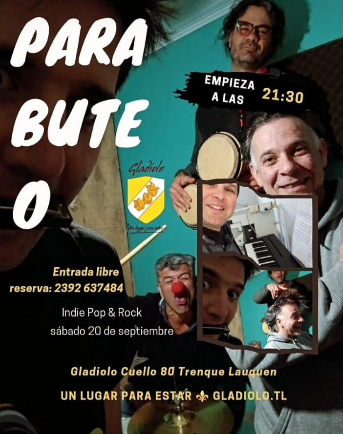 Este sábado 20 de septiembre a las 21.30 hs se presenta en Café Gladiolo (Cuello 80) Parabuteo, con su propuesta de Indie Pop y Rock. La entrada es libre y las reservas se pueden hacer al 2392 637484.
