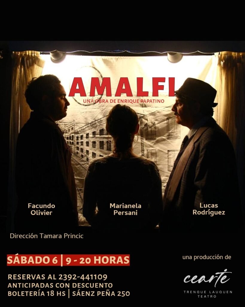 Este sábado 6 de Septiembre a las 20 horas, volverá a presentarse en el escenario de la Sala de Cearte la obra “Amalfi”, de Enrique Papatino.