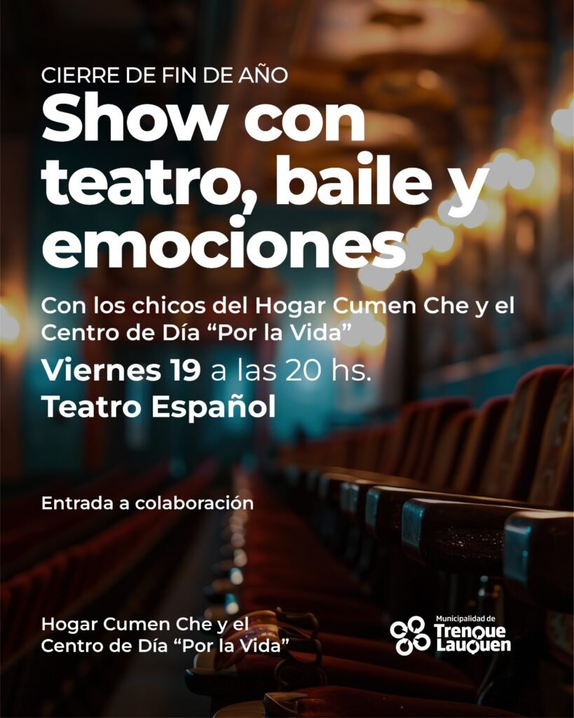 Este viernes 19 de diciembre a las 20 hs en el Teatro Español será el cierre de fin de año con los integrantes del Hogar Cumen Che y el Centro de Día “Por la vida”.