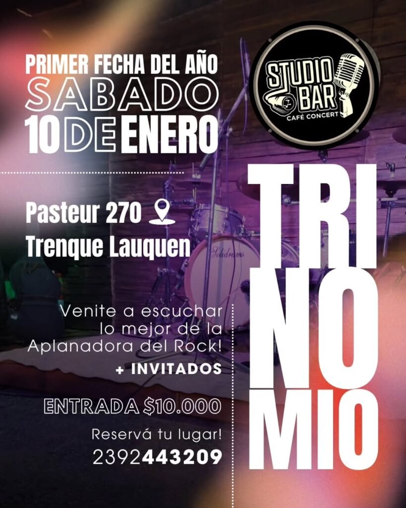Este sábado 10 de enero en Studio Bar (Pasteur 270) se presenta la banda local Trinomio con su propuesta rockera y con invitados sorpresa.