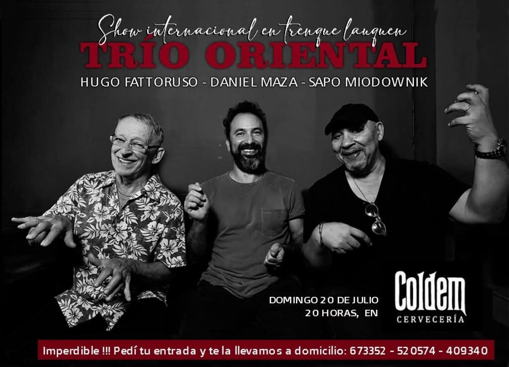 El Trío Oriental se presenta el 20 de julio a las 20 hs. en Cervecería Coldem de Trenque Lauquen. Esta reconocida formación está integrada por Hugo Fattorusso, Daniel Maza y Fabián Miodownik. Las entradas se pueden adquirir a los teléfonos 2392 673352 / 520574 / 409340.