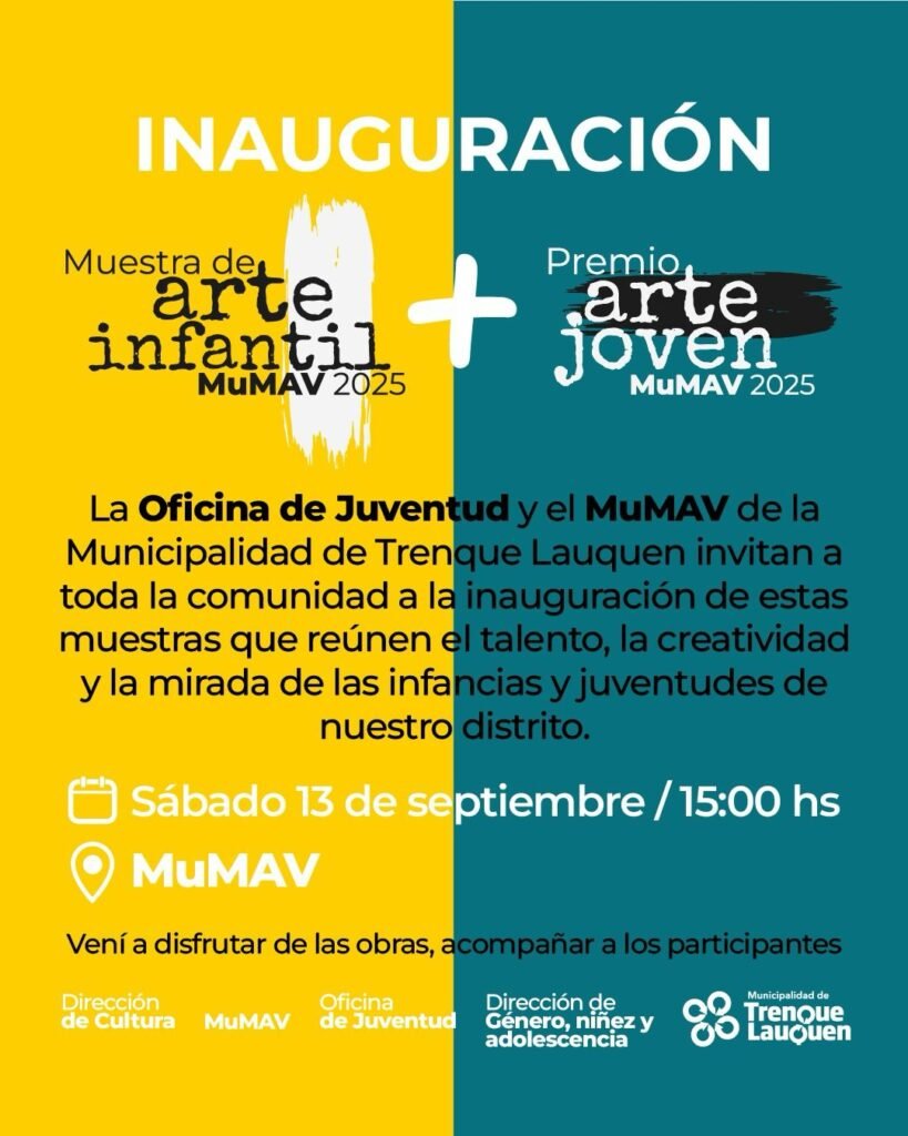 Este sábado 13 de septiembre a las 15 hs. en el MuMAV será la inauguración de la Muestra de Arte Infantil y del Premio de Arte Joven, que estará en exhibición durante los meses de septiembre y octubre del 2025.
