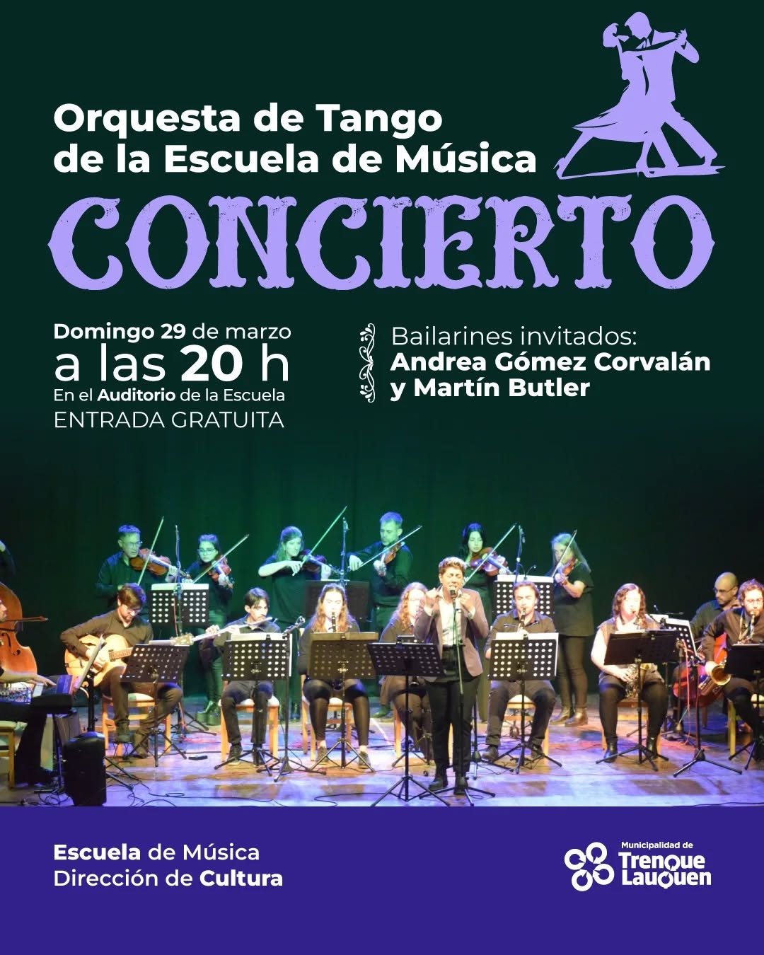 DestacadoAuditorio Escuela Municipal de Música Parque Conrado Villegas, treEste domingo 29 de marzo deasde las 20 hs en el Auditorio de la Escuela de Música la Orquesta de Tango municipal brindará un concierto con entrada gratuita. Esta presentación […]
